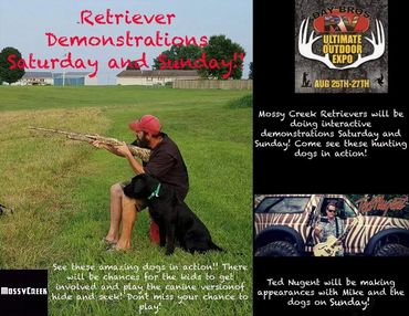 After your Mossy Dog finishes their level of training, it's time to get them in the field. Mossy Creek provides a couple of different opportunities to get your dog on some birds. Whether it's shooting Specklebellies in Mississippi, chasing puddle ducks in Oklahoma, or flushing pheasant in Kentucky, there are opportunities to put the training into action.